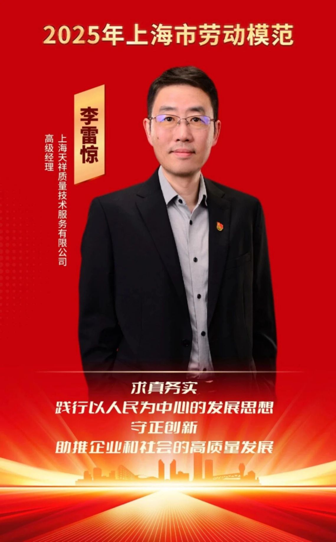 2025年获上海市劳动模范。