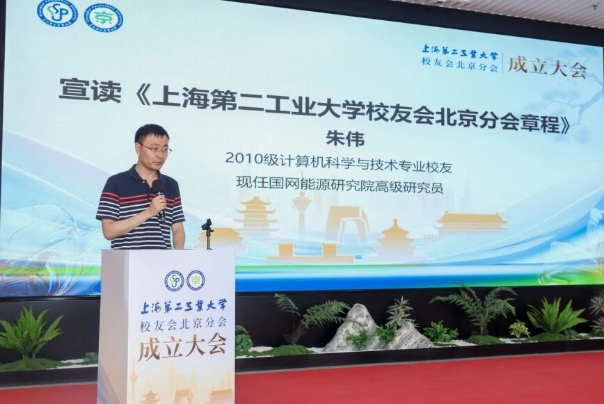 会上,2014届计算机科学与技术专业校友朱伟宣读了《上海第二工业大学校友会北京分会章程》。