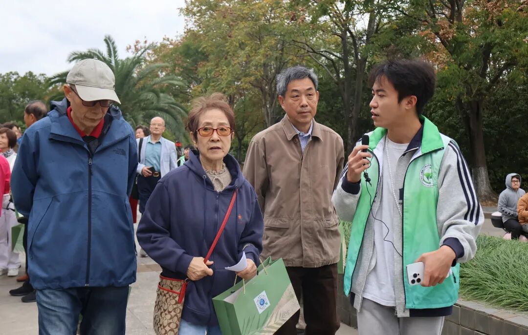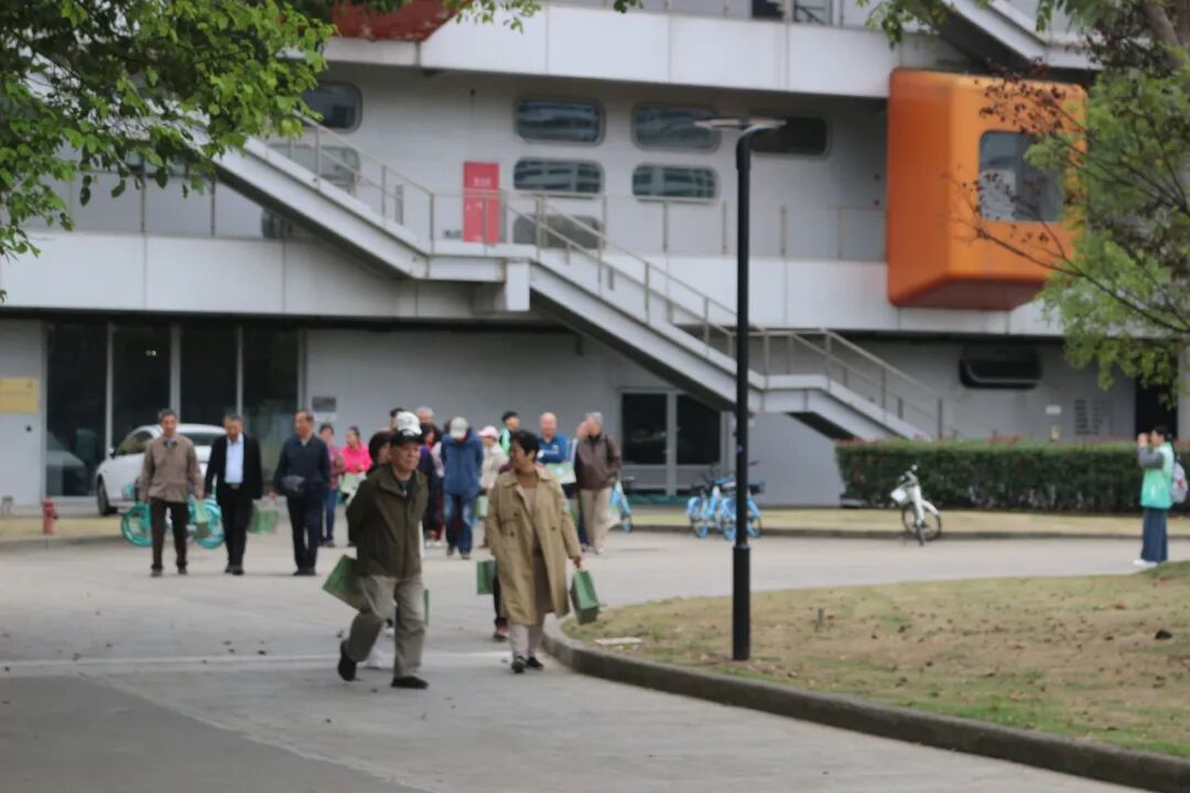 随后,本科生志愿者们带领校友们漫步金海路新校区,一路走过文武桥、学生活动中心、竑德桥等标志性地点,细致讲解每一处地标背后的故事与精神内涵。